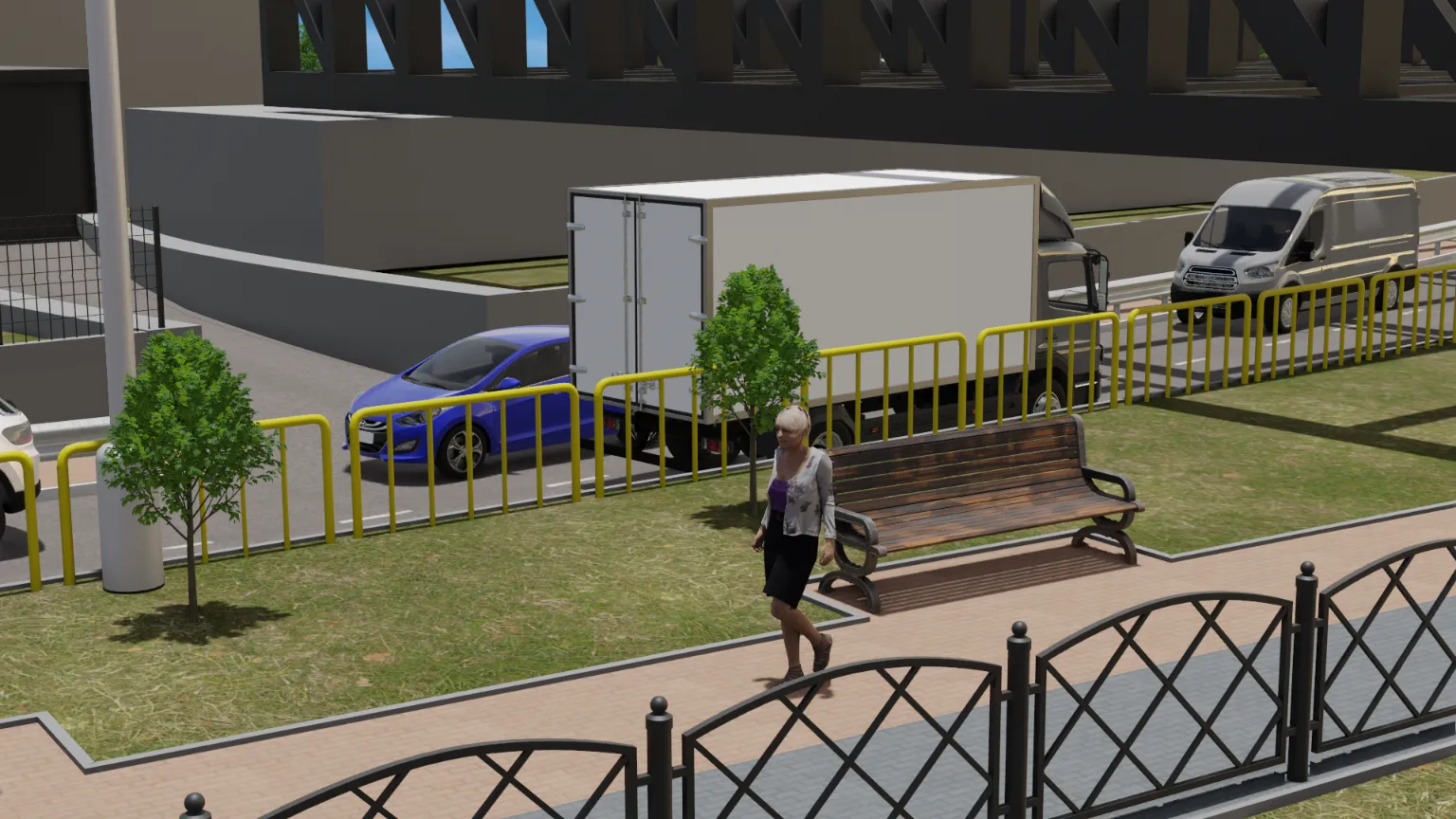 Kluczowe rozwiązania zaznaczone na poniższej wizualizacji są częścią pozwolenia na budowę. Detale, jak np. kolor, kształt barierek, czy ich umiejscowienie mogą się różnić w finalnej realizacji.